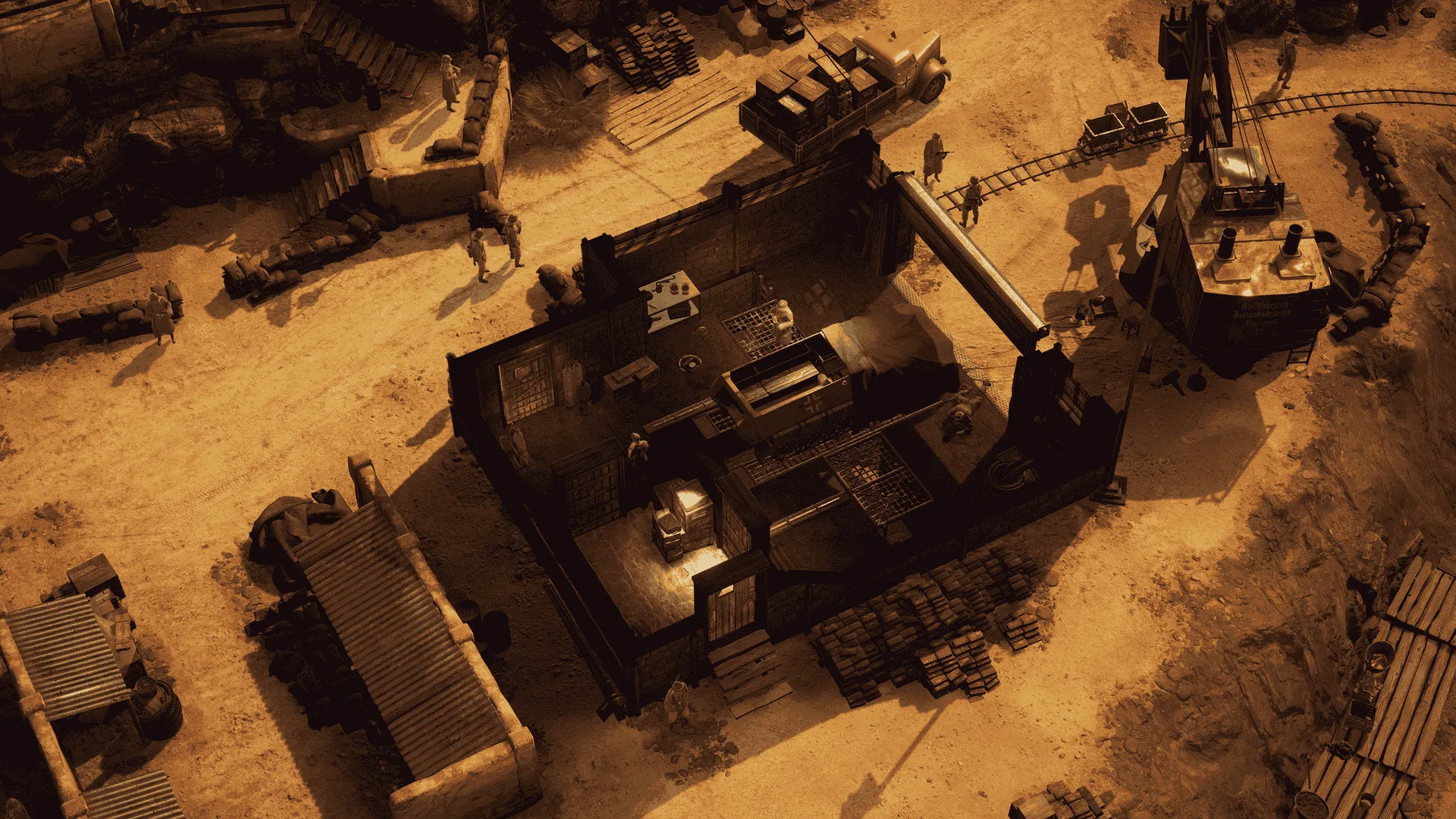 Ob man nun in einem verregneten französischen Dorf unterwegs ist, sich durch eine von Flutlicht durchtränkte Wüstenfestung in Nordafrika schleicht oder über ein eisiges U-Boot-Dock in Norwegen klettert – jedes Areal wirkt glaubwürdig und authentisch. Historische Elemente wie alte Wehrmachtsbunker, zerschossene Brücken oder Propaganda-Plakate vermitteln eine dichte Atmosphäre, die man fast riechen kann. Es fühlt sich oft so an, als hätte man eine Miniaturwelt betreten, die genau auf die Epoche zugeschnitten wurde.