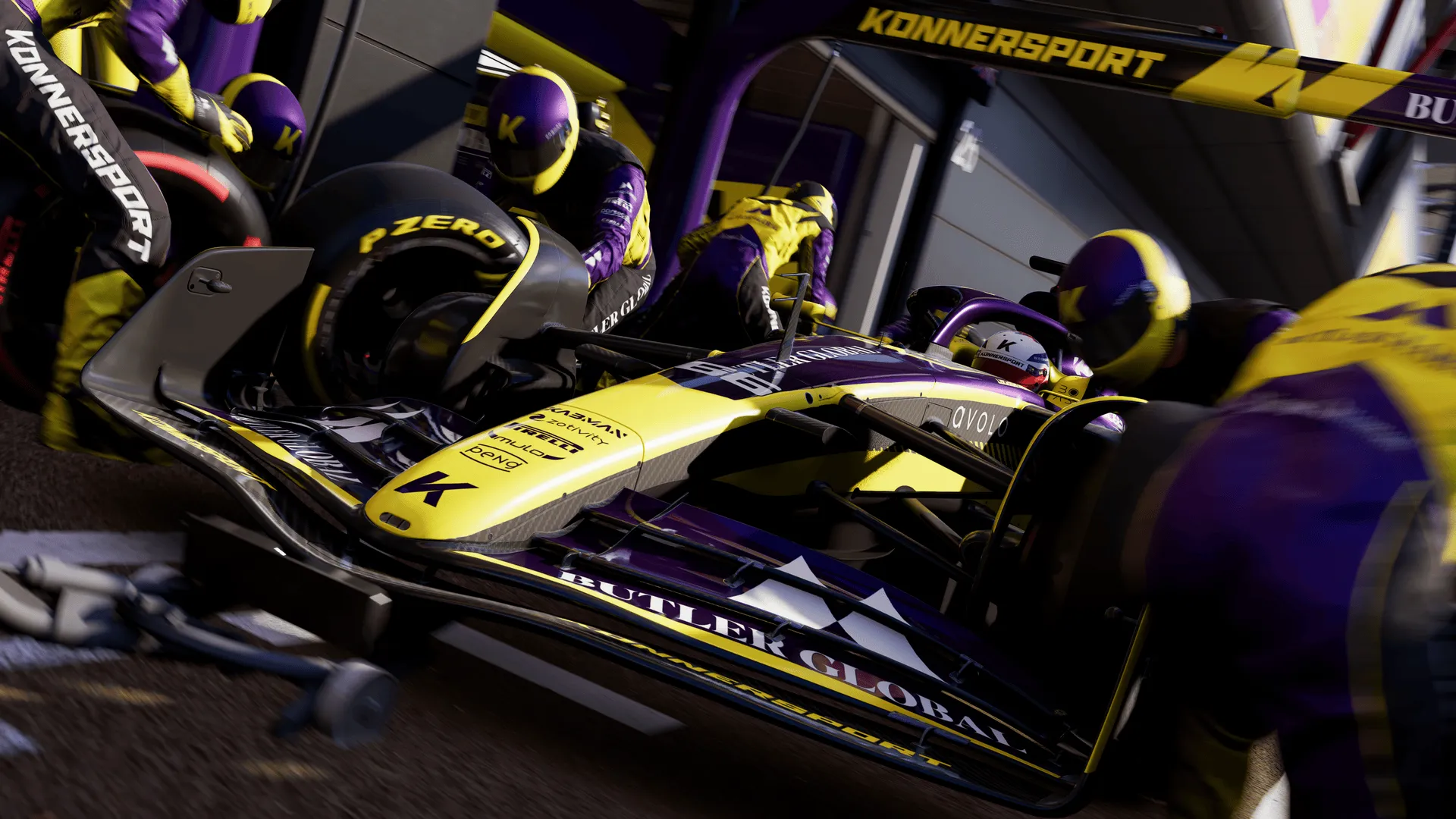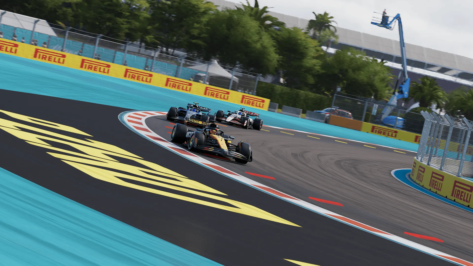 Auch das Licht- und Wettermodell wurde weiter optimiert. Sonnenuntergänge auf Strecken wie Abu Dhabi oder Miami tauchen die Szenerie in atmosphärisches Licht, während Regenschauer realistisch über die Visierkamera perlen. Pfützen bilden sich glaubwürdig auf der Ideallinie - ohne übertrieben zu wirken.