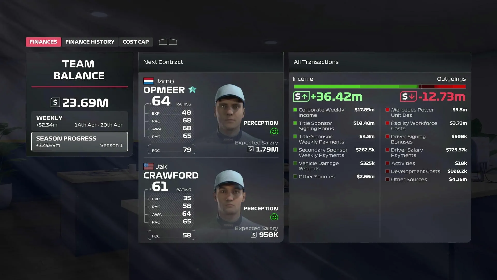 Kommen wir zurück zur klassischen Karriere - die Sponsorenverhandlungen, Entwicklungspfade und Teamchemie erinnern stark an F1 24, wurden aber an einigen Ecken entschlackt und flotter gestaltet.