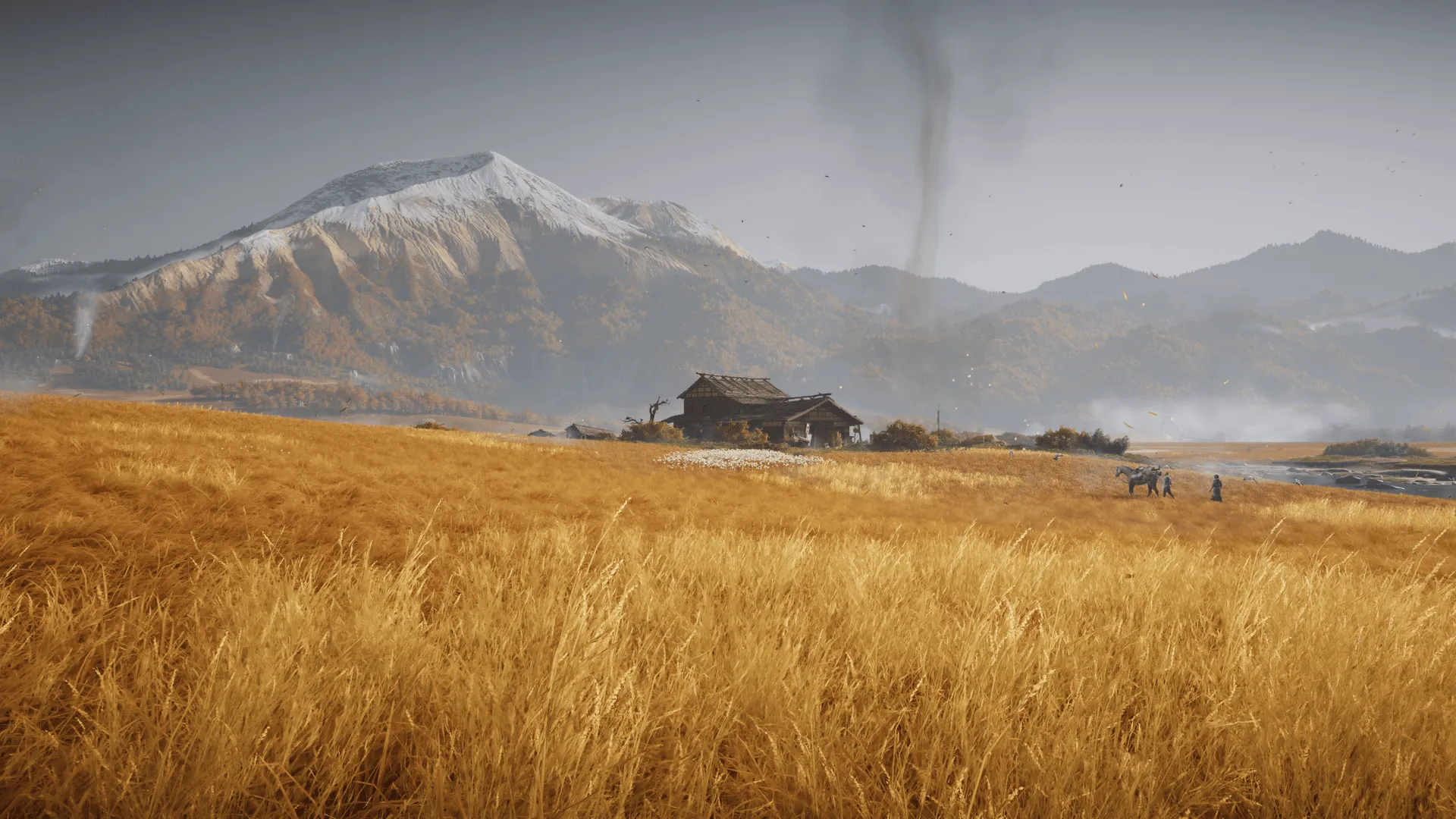 Ezo ist kein zweites Tsushima - und das ist gut so. Statt goldener Herbstfelder und sanftem Bambus bietet Ghost of Yōtei eine raue, kontrastreiche Landschaft: verschneite Gipfel, tiefgrüne Wälder, dampfende Thermalquellen und weite, windgepeitschte Ebenen. Wo Spiele wie zum Beispiel Assassin's Creed Shadows auf präzise, historische Rekonstruktion und realistische Städte setzen, wählt Ghost of Yōtei den poetischeren Weg.
