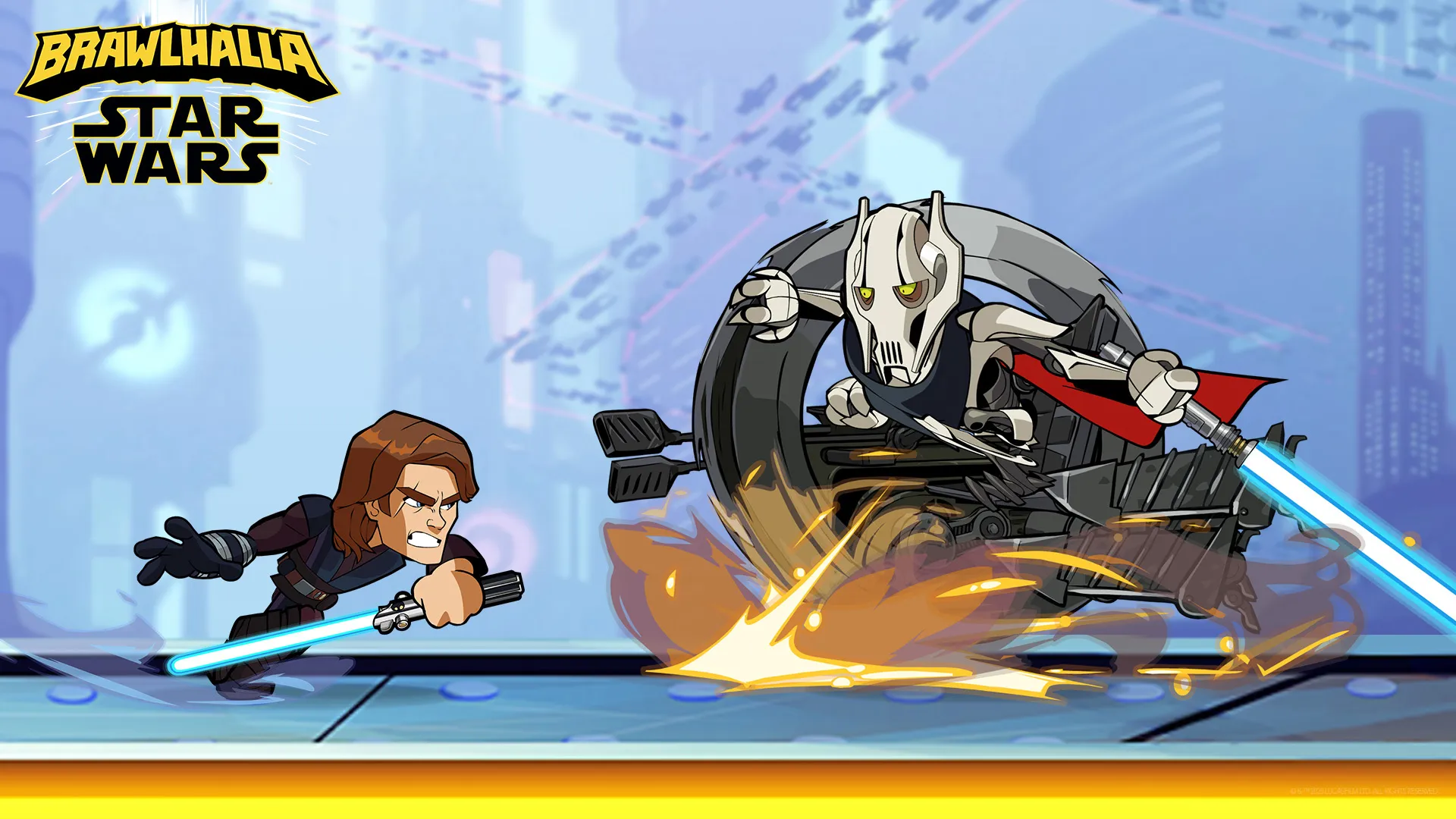 General Grievous gesellt sich zu neun anderen Star Wars-Charakteren im Brawlhalla-Roster aus früheren Crossover-Events: Darth Vader, Anakin Skywalker, Obi-Wan Kenobi, Ahsoka Tano, Darth Maul, Han Solo, Chewbacca, Kay Vess und Nix sowie der Mandalorianer mit Grogu.