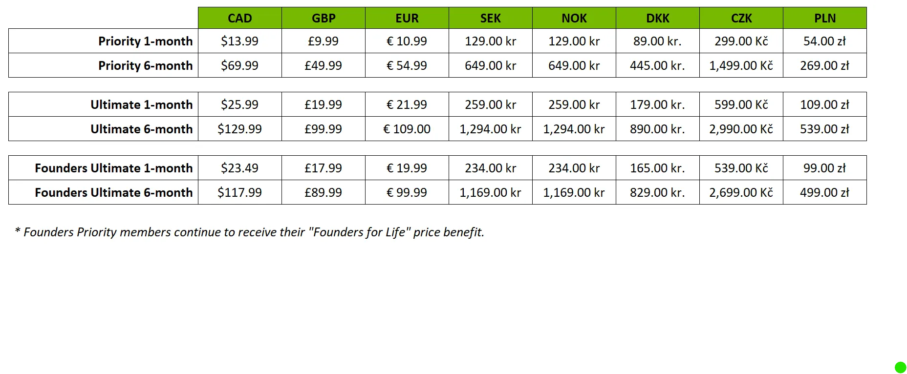 Abschließend noch ein Service-Hinweis: Die Preise für Premium-GeForce-NOW-Mitgliedschaften werden am 1. November in europäischen Währungen erhöht. Sowohl aktive als auch neue Mitglieder, die sich vor dem 1. November anmelden, können ihre Mitgliedschaft zum aktuellen Preis für 6 Monate festschreiben. Mitglieder erhalten eine E-Mail mit weiteren Details. Die neuen regionalen Preise findest du in der beigefügten Tabelle.