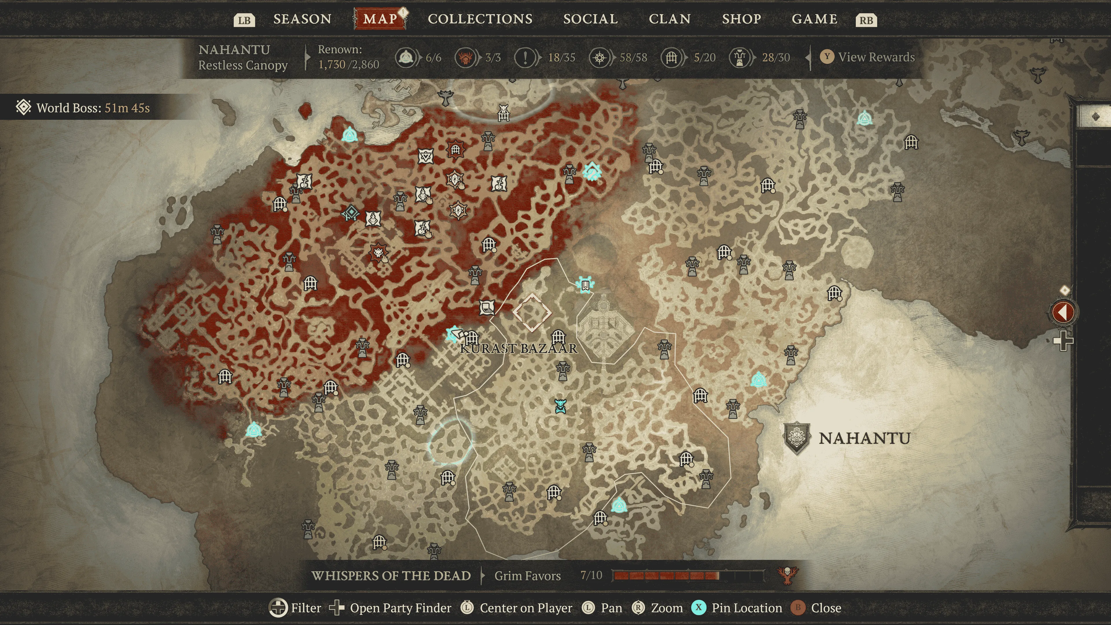 Leider wird auch hier Potenzial verschenkt, denn die Mechanik ist insgesamt zu leicht und das Farmen von Ruf gestaltet sich eher nervig als wirklich unterhaltsam oder motivierend. Für die Teilnahme an den Realmwalker-Events erhält man in Zarbinzet bei Crusader Damond Rufpunkte für die Fraktion der Zakarum Remnants. Mit dem Aufstieg durch die Ränge 1 bis 10 schaltet man diverse Belohnungen frei, die zudem mit der Season-Reise verknüpft sind.