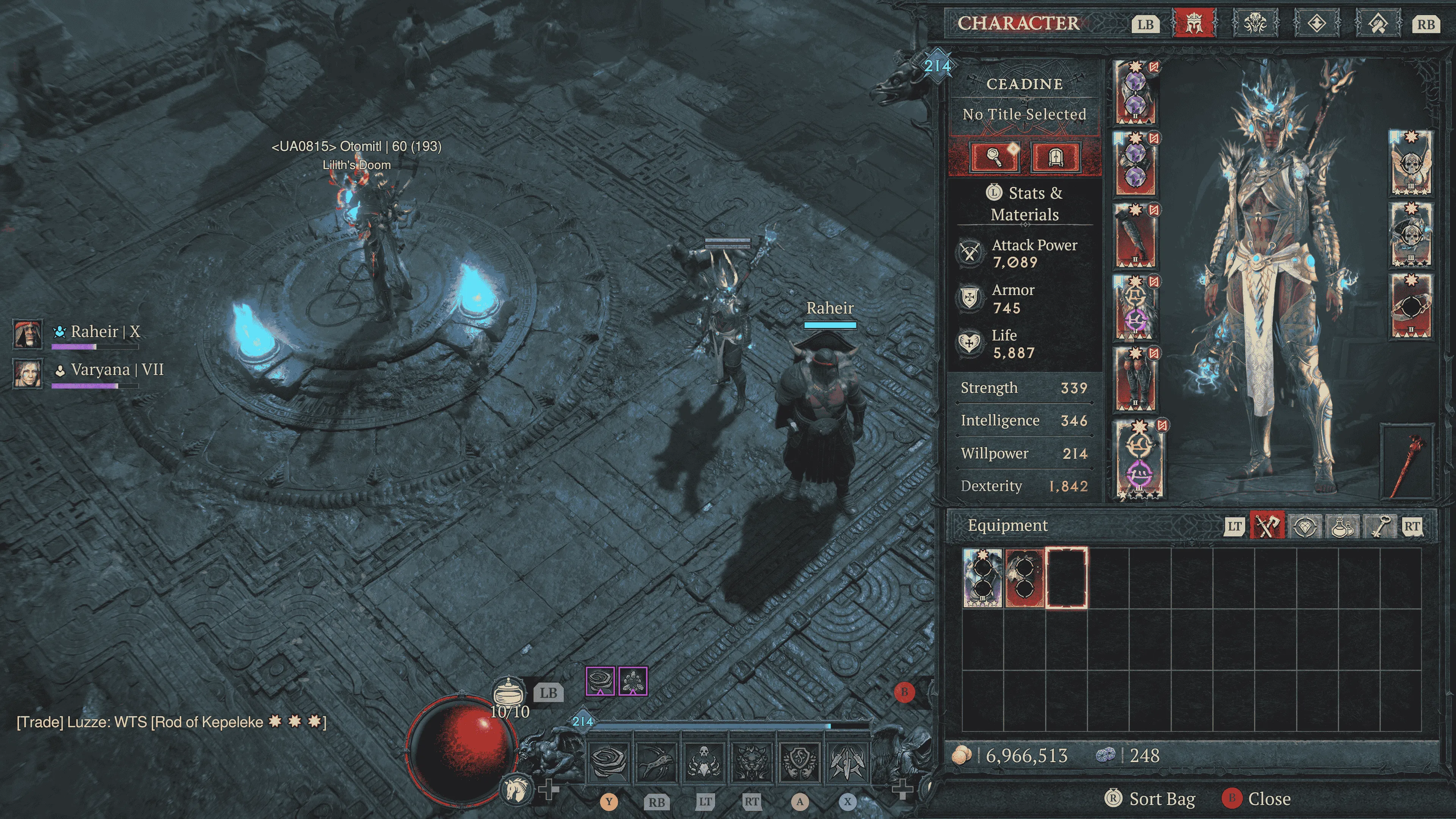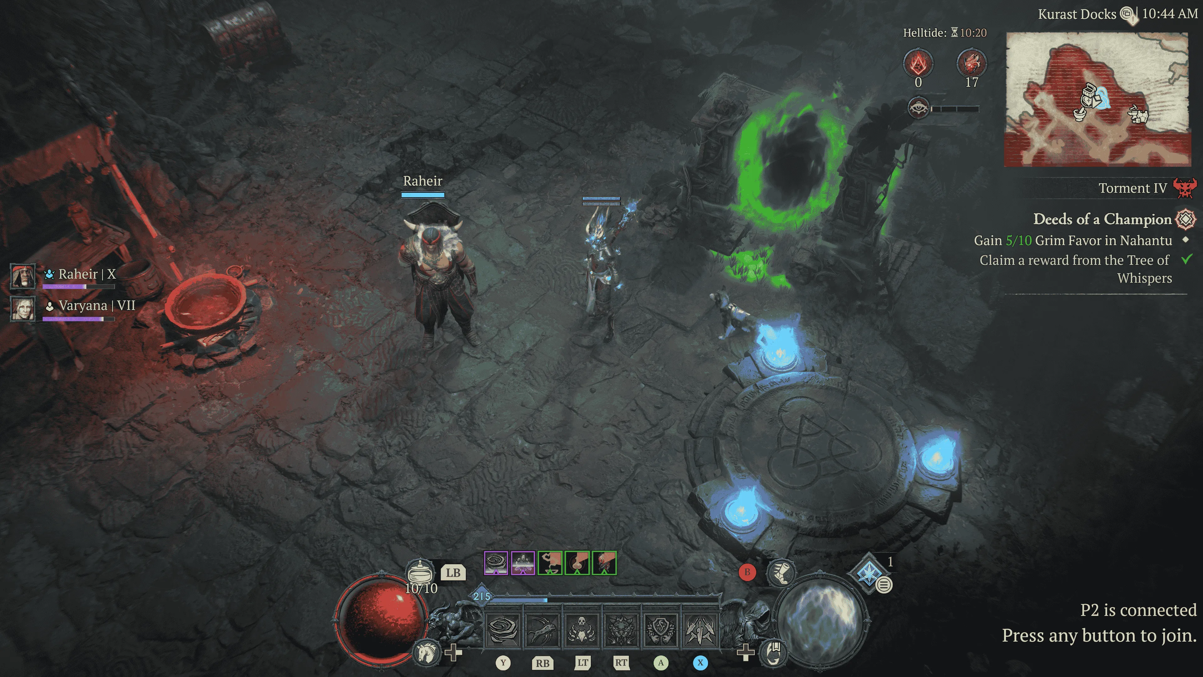 Nahantu bietet eine erfrischende, wenn auch vertraute Welt voller Nebenquests, Sammelobjekte und optionaler Aktivitäten. Während einige Spieler das bewährte Fortschrittssystem schätzen werden, könnte es für andere etwas repetitiv wirken. Dennoch fügt Vessel of Hatred auch interessante Neuerungen hinzu, wie etwa die Rückkehr der Söldner aus Diablo II. Diese NPC-Begleiter haben eigene Fähigkeitenbäume und bieten Solo-Spielern zusätzliche Unterstützung. Nach Abschluss einer kleinen Questreihe werden die Begleiter freigeschaltet und schaffen durch ihre Präsenz im Hub „The Den“ eine persönliche Bindung zum Spieler. Dort können sie jederzeit gewechselt und angepasst werden. Zudem ist es möglich, im Hub Verkäufer freizuschalten, die, in Kombination mit den Söldnern und durch das Verdienen einer speziellen Währung, neue Gegenstände anbieten.