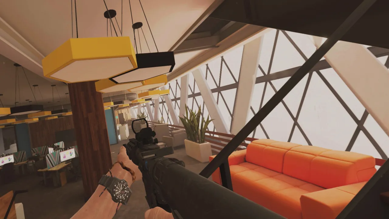 Visuell überzeugt Firewall: Ultra und hebt sich als eines der besten Spiele auf der PlayStation VR 2 hervor. Arme, Waffen und Umgebungen sind sehr detalliert dargestellt und lassen beim ersten Spielen schon bleibende Eindrücke. Die Integration von Funktionen wie Eye-Tracking verleiht dem Spielerlebnis eine zusätzliche Raffinesse. Mit ihm ist es möglich durch die Menüs zu navigieren oder aber bei bestimmten Augenbewegungen die Zoomfunktionen der Waffe zu nutzen. Auch die Adaptiven Trigger, die wir zuvor schon erwähnten, sorgen für ein etwas realistischeres Gefühl beim Abzug der Waffe. Die Vibrationsmotoren verstärken dieses Gefühl nochmals.