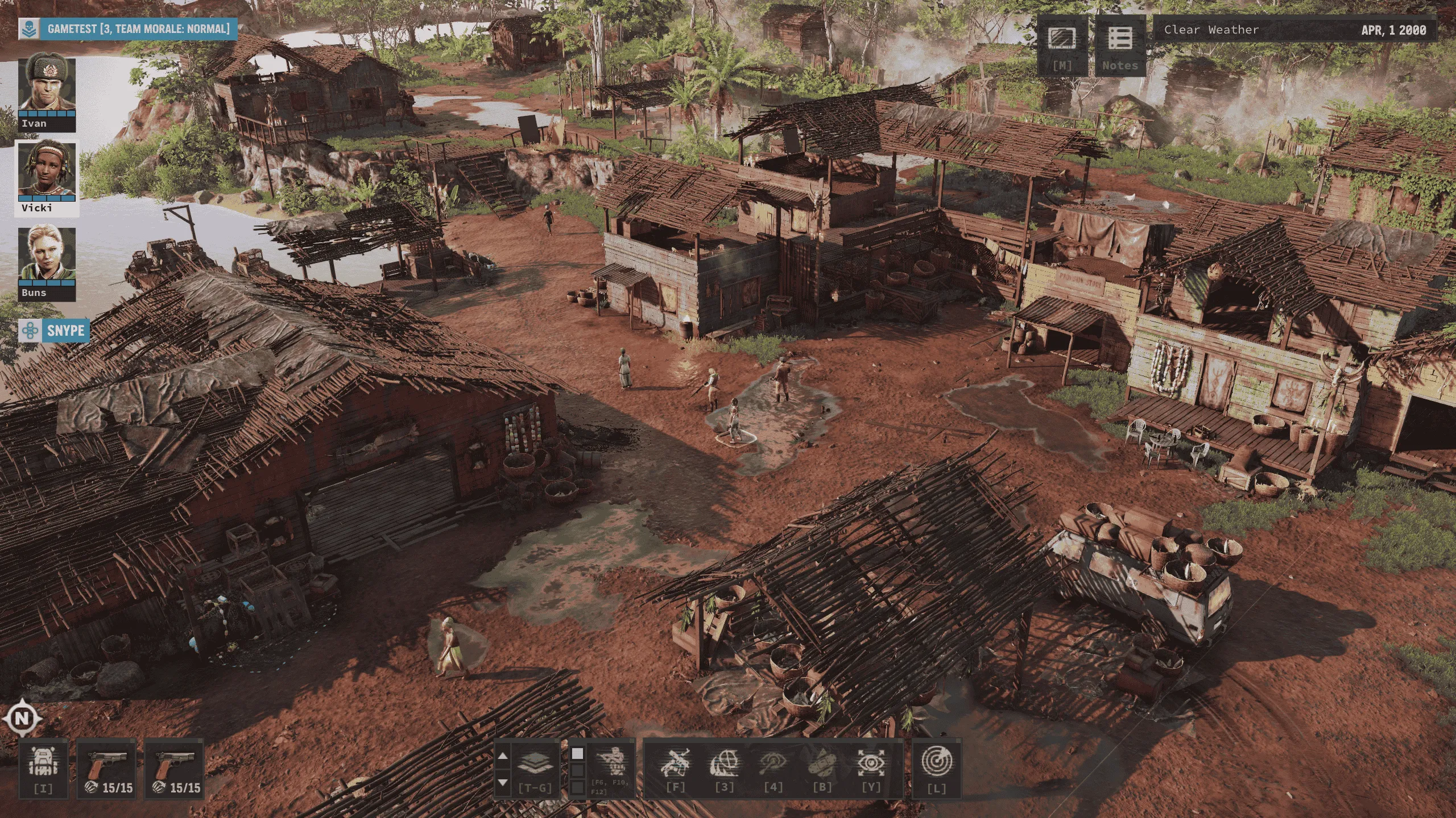 Wie schon zu Beginn gesagt dreht sich in Jagged Alliance 3 alles um eine kleine Einheit, die einen Krieg führt und die ihr als Spieler befehligen müsst. Dabei muss man nicht nur ihre Ausrüstung verwalten, sondern auch mit ihren Persönlichkeiten und Eigenheiten in den rundenbasierten Schlachten auf einer offenen Weltkarte klarkommen. So weit ich es verstanden habe spielen wir im Spiel nicht auf der guten Seite und sollen mit unserer Guerilla Einheit in einem zerütteten afrikanisch anmutenden Land und einem Diamantenbergbauunternehmen als Auftraggeber die Welt umkrempeln. Insgesamt bekommt man es in diesem fiktiven Szenario mit Slums, Warlords und Schamanen zu tun.